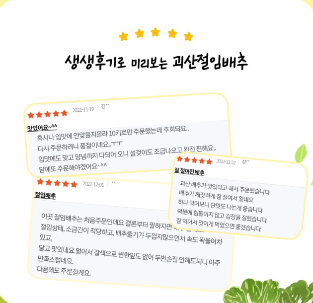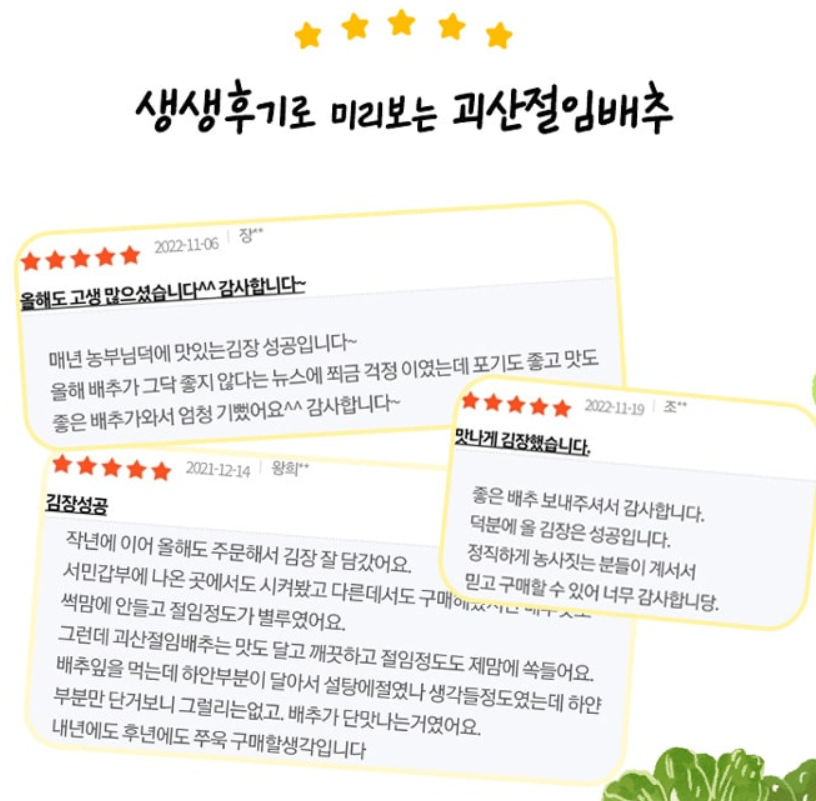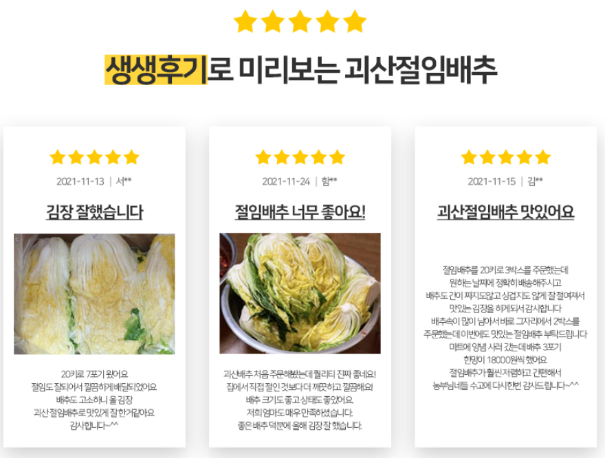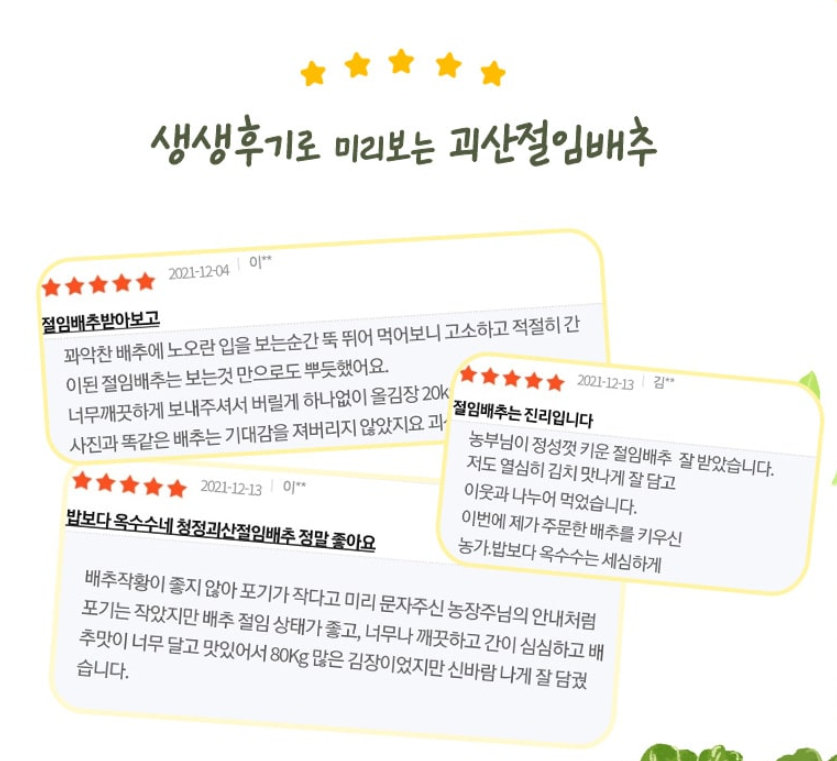 괴산시골절임배추영농조합법인 -상품가격정보(10kg, 20kg), 김치양념, 희망수령일, 상품특징,예약하기