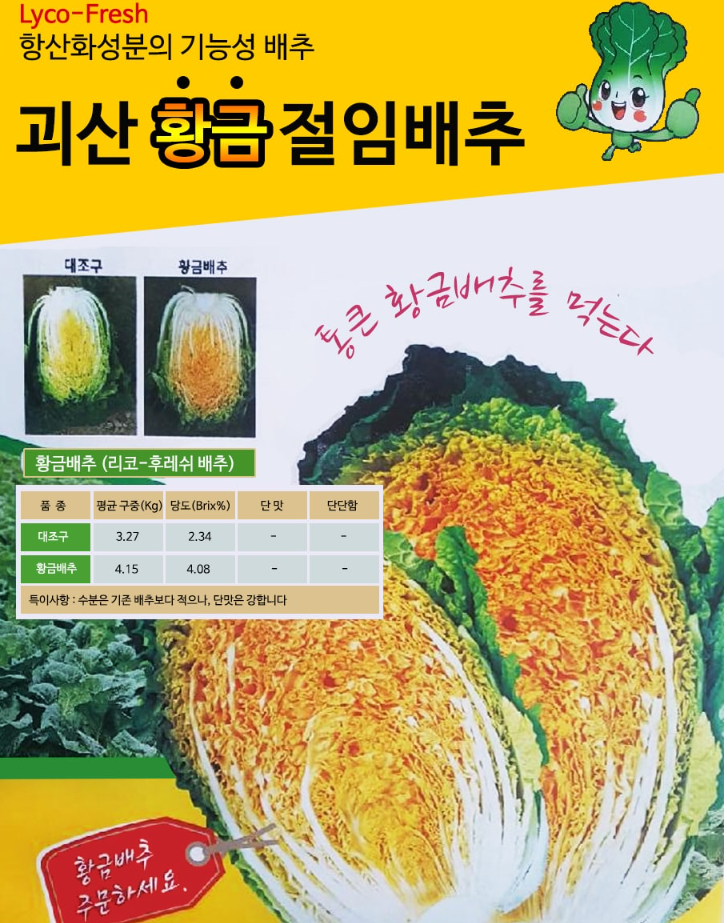 - 배추 속이 황금색이고 일반 배추보다 맛이 우수하다.