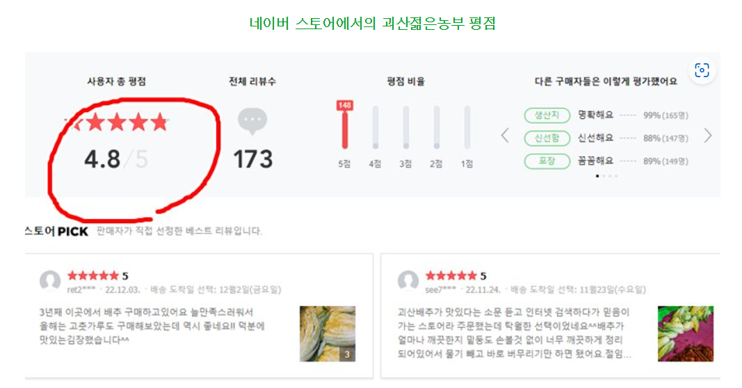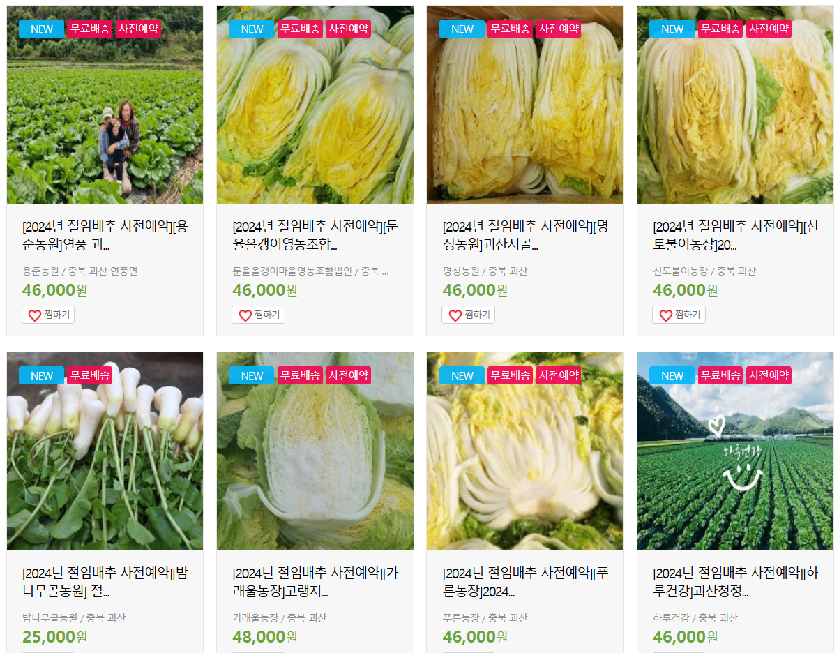 괴산군에서 운영/관리하는 괴산장터에서 판매되는 절임배추를 11월 4일 기준으로 판매순으로 12 농가 정보를 알아보았습니다.