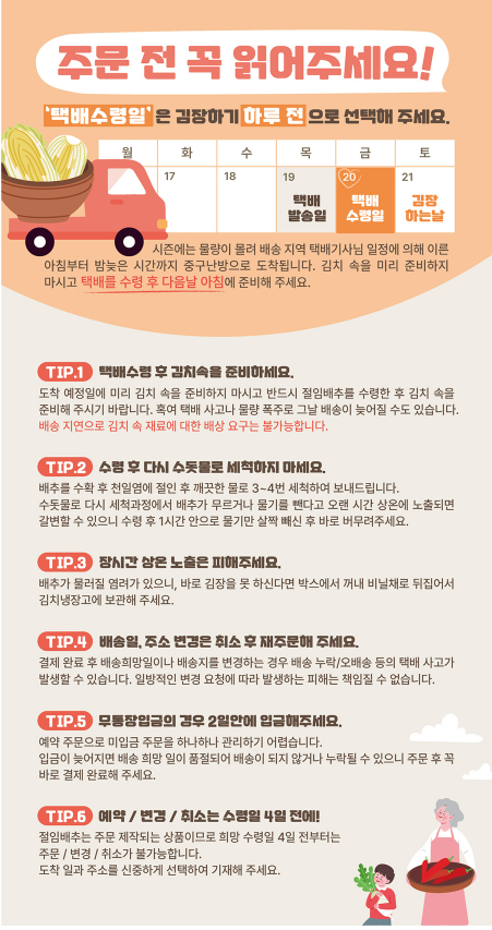 김장 예정일을 잘 계획하시어 상품 품절 전에 확인하시기 바랍니다.