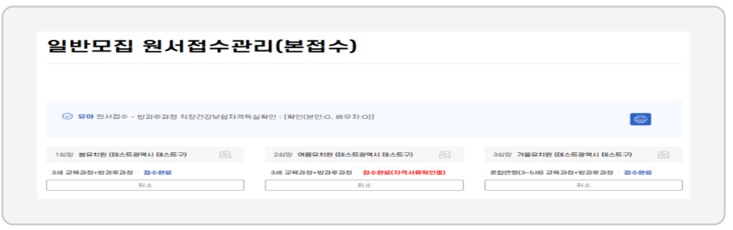 ① -1. 방과 후 과정 자격이 확인된 경우로 접수증을 출력하고 7단계로 넘어갑니다.