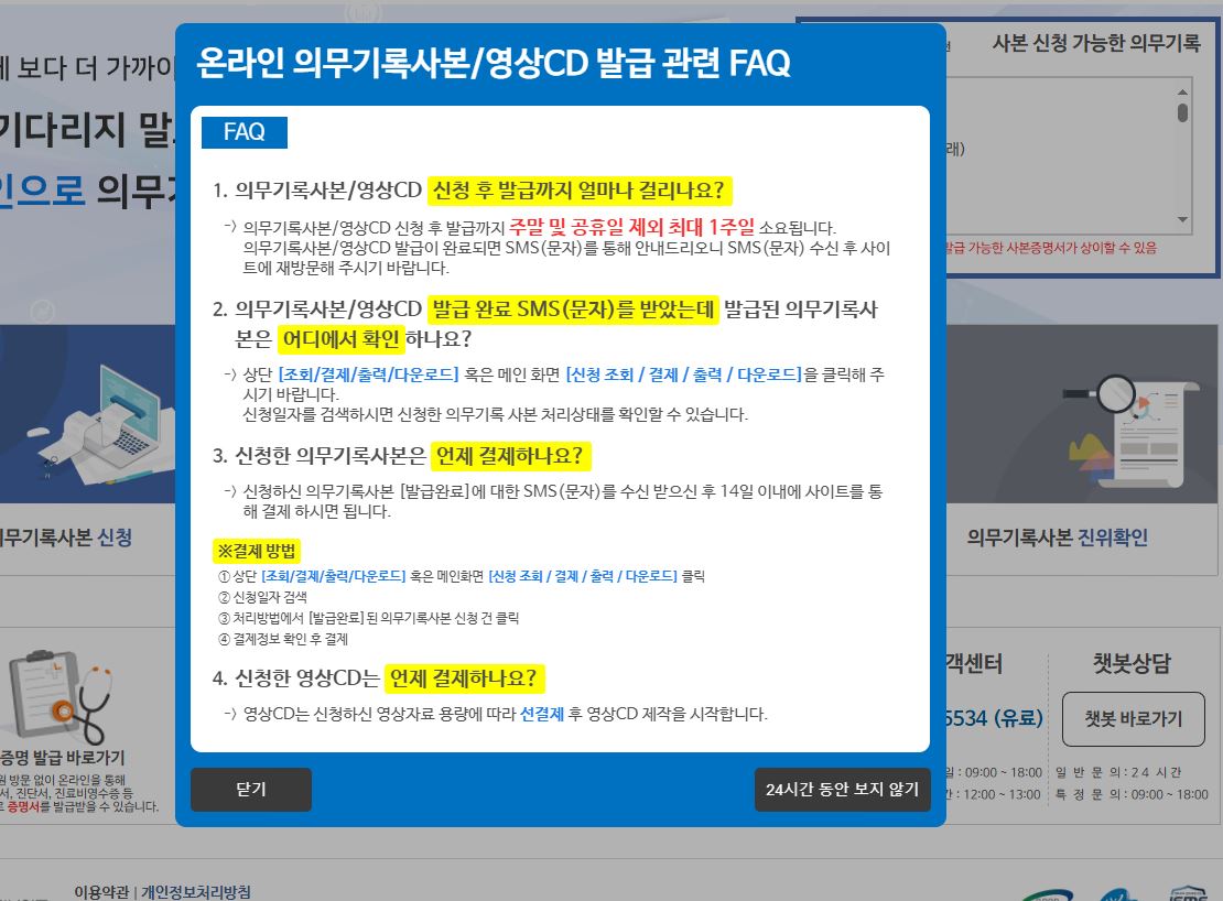 병원홈페이지에서 의무기록사본 온라인 발급 절차