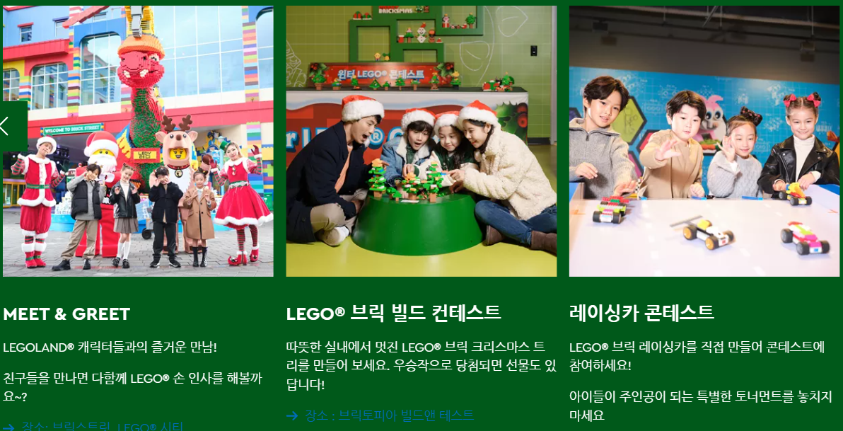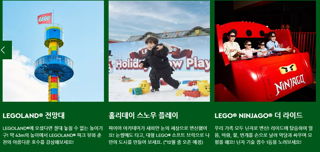 겨울 시즌 레고랜드의 운영달력을 먼저 확인하시어 미운영일에 방문하시는 일이 없기를 바랍니다.