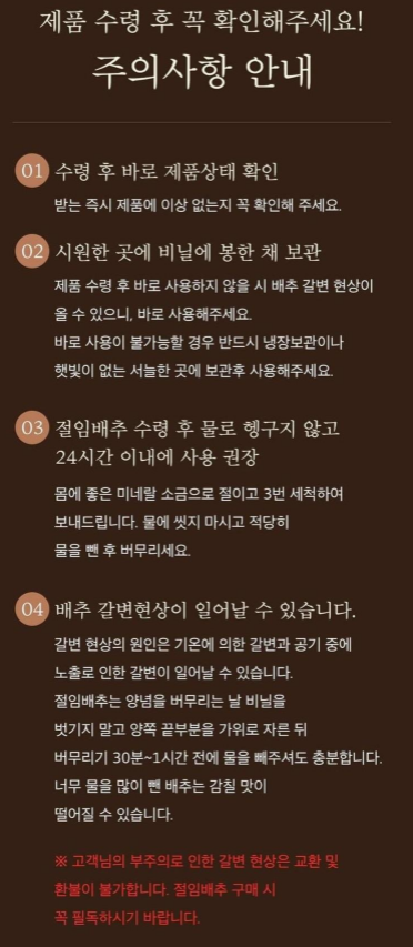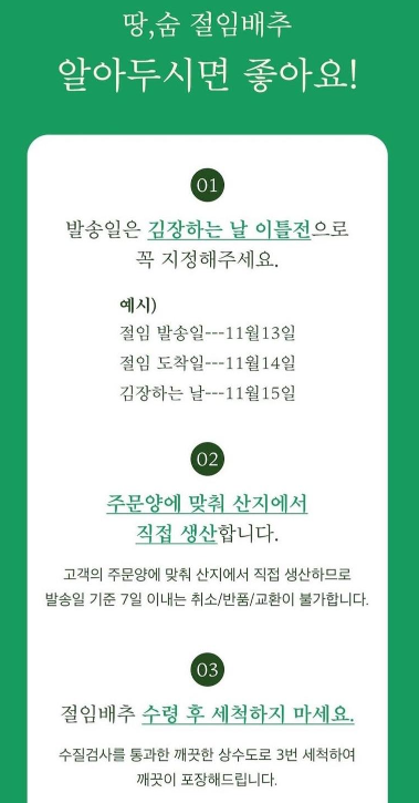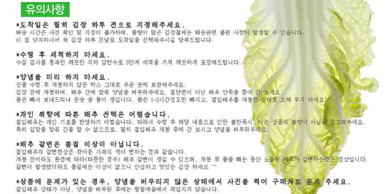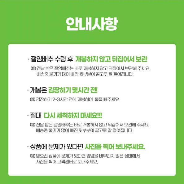 절임배추 20kg 기준 - 판매가격 45,000원(No.2번 ~ No.10번)