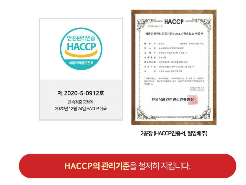 No.5 해남친환경(주) : 절임배추 20kg(HACCP 해썹)