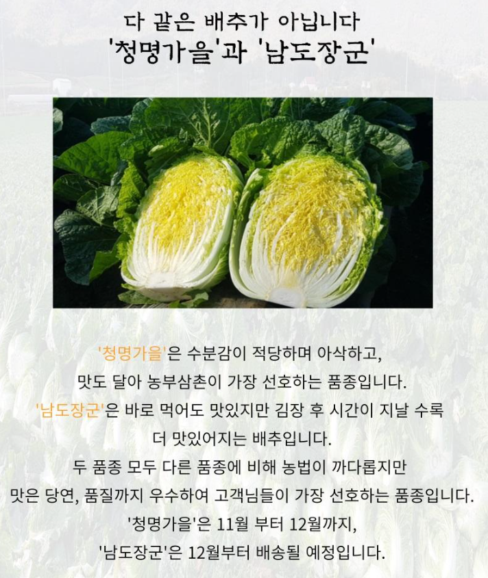김장철이 다가왔습니다.지난번 괴산 절임배추 소개에 이어 이번에는 해남 절임배추에 대해 소개해 드리겠습니다.