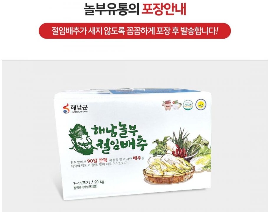 No.14 땅끝햇살식품 : 절임배추 20kg/10kg(HACCP 해썹)