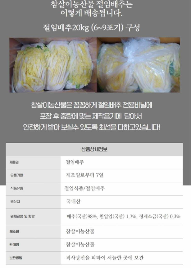 No.12 참살이농산물 : 절임배추 20kg/10kg(HACCP 해썹)