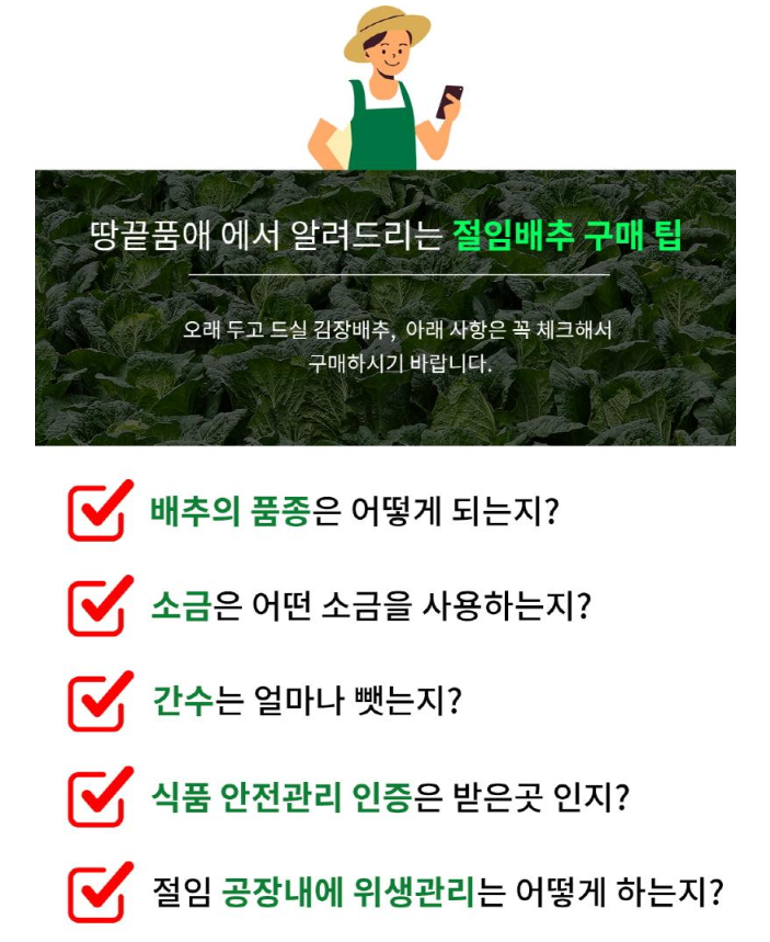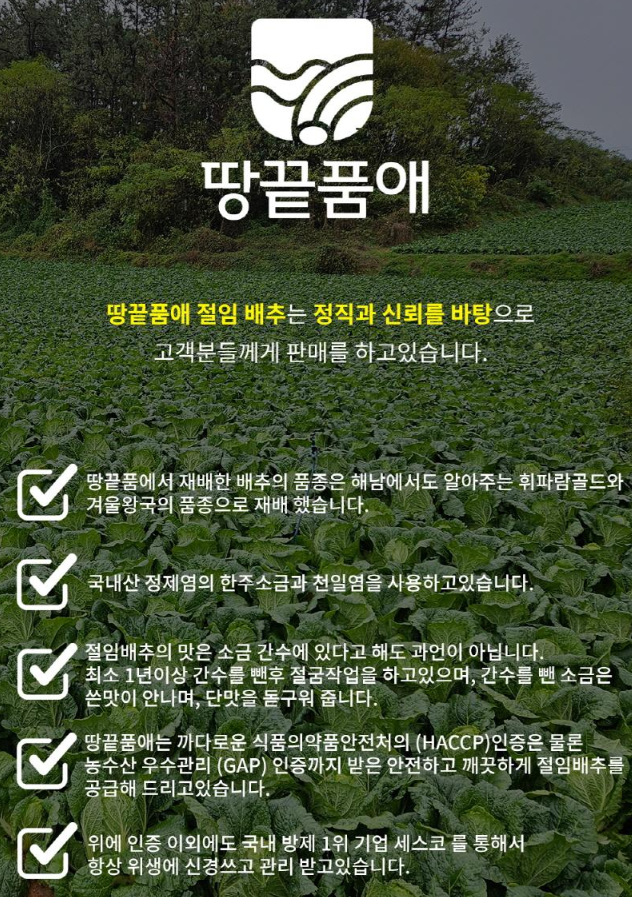 No.11 땅끝푸른들영농조합법인 : 절임배추 20kg/10kg(HACCP 해썹)