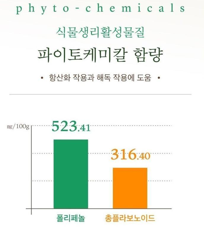 *파이토케미칼은 브로콜리나 녹차,배추와 같은 식물성 식품에 미량 함유된 성분으로 항산화 작용 및 면역기능 증진등에 도음을 주는 성분으로 알려져 있습니다.