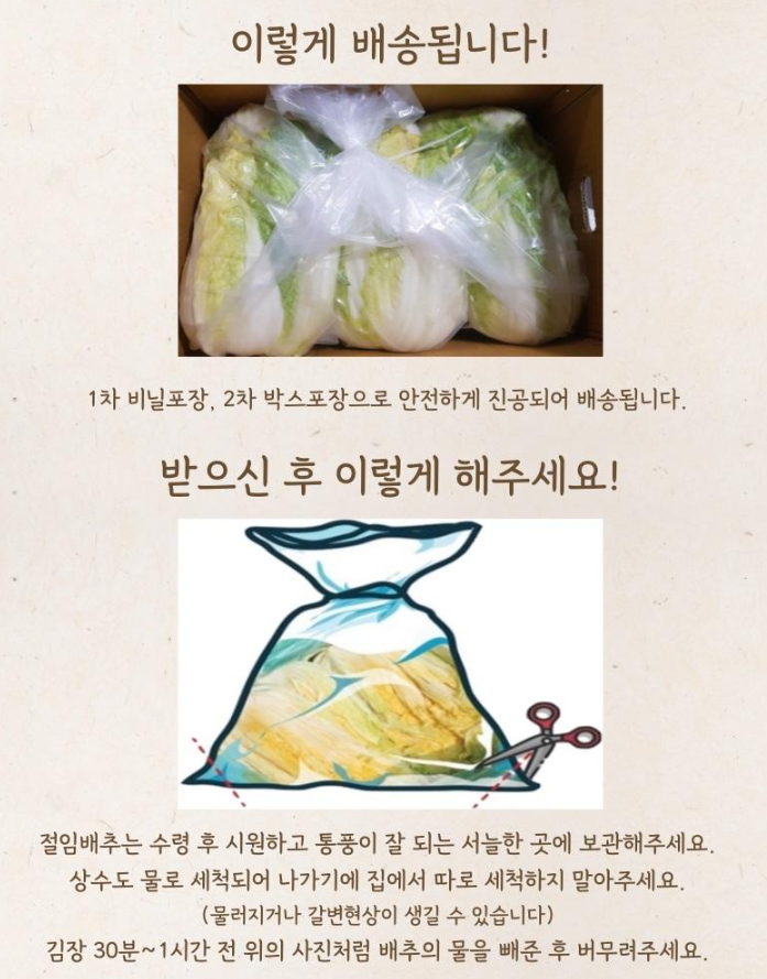 절임배추 20kg 기준(10kg동시판매) - 판매가격 45,000원(No.11번 ~ No.14번)