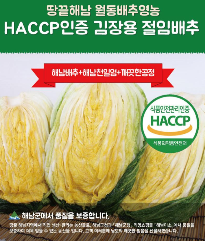 No.8 해남월동배추 영농조합법인 : 절임배추 20kg(HACCP 해썹)