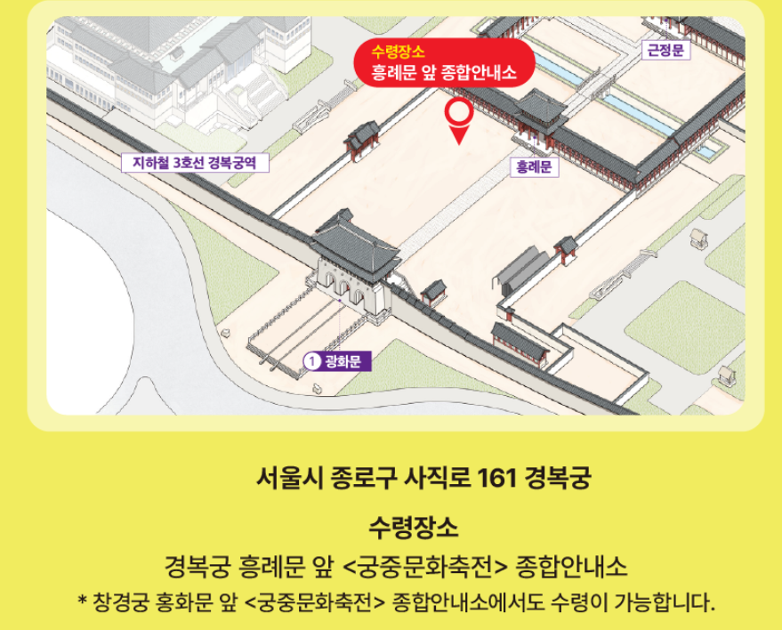 - 수령장소 : 1) 경복궁 흥례문 앞 <궁중문화축전> 종합안내소