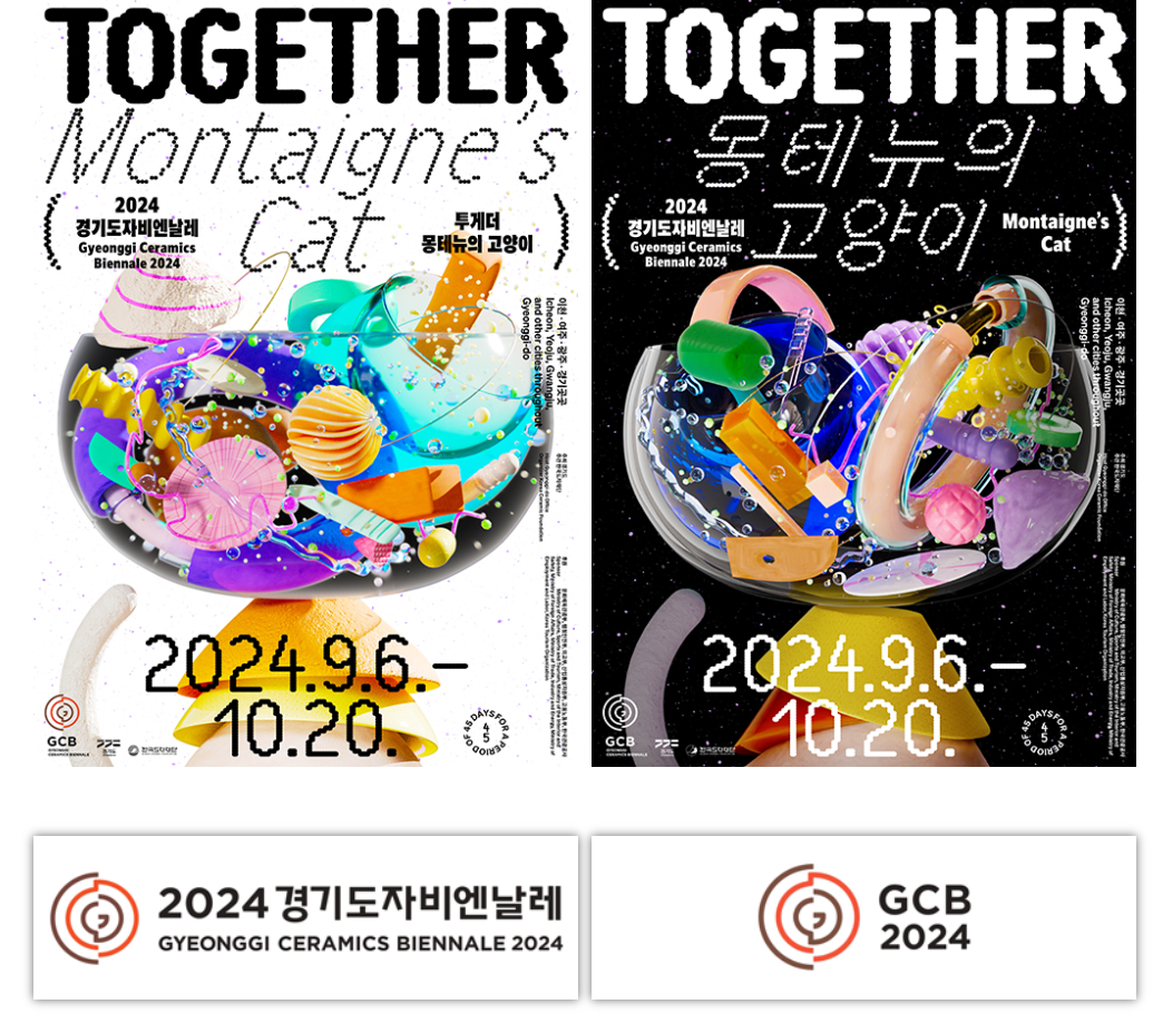 올해로 12회를 맞이한 2024경기도자비엔날레의 주제는 “투게더_ 몽테뉴의 고양이 (TOGETHER_ Montaigne’s Cat)”로, 미국인 사회학자 리처드 서넛의 '호모 파베르 프로젝트' 시리즈 중 두 번째 책인 『투게더: 다른 사람들과 함께 살아가기(Together: The Ritual, Pleasure, And Politics of Cooperation)』에서 영감을 받아 현대사회의 협력과 소외에 대한 중요성을 탐구합니다. 이 주제는 단순한 협력이 아닌, '내가 고양이와 놀고 있으면서, 사실은 그 고양이가 나와 놀고 있는 것이 아니라는 걸 내가 어찌 알겠는가?'라는 몽테뉴(Michel de Montaigne)의 고양이를 통해 바라본 깊이 있는 협력을 의미합니다.